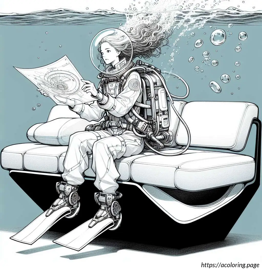This image is a black and white line drawing of a cute, cartoon style elderly man sitting comfortably in an armchair. He is wearing round glasses, and his facial expression is cheerful with a gentle smile. He has a round face, a small tuft of hair under his chin, and is wearing a Santa hat, indicating a holiday theme. The character is reading a book, holding it open with both hands. His attire includes a simple long-sleeve shirt and pants, and he is wearing slippers. The overall appearance gives an impression of a cozy, content individual, likely enjoying a quiet moment. This type of image could be appealing to children and is suitable for coloring activities.